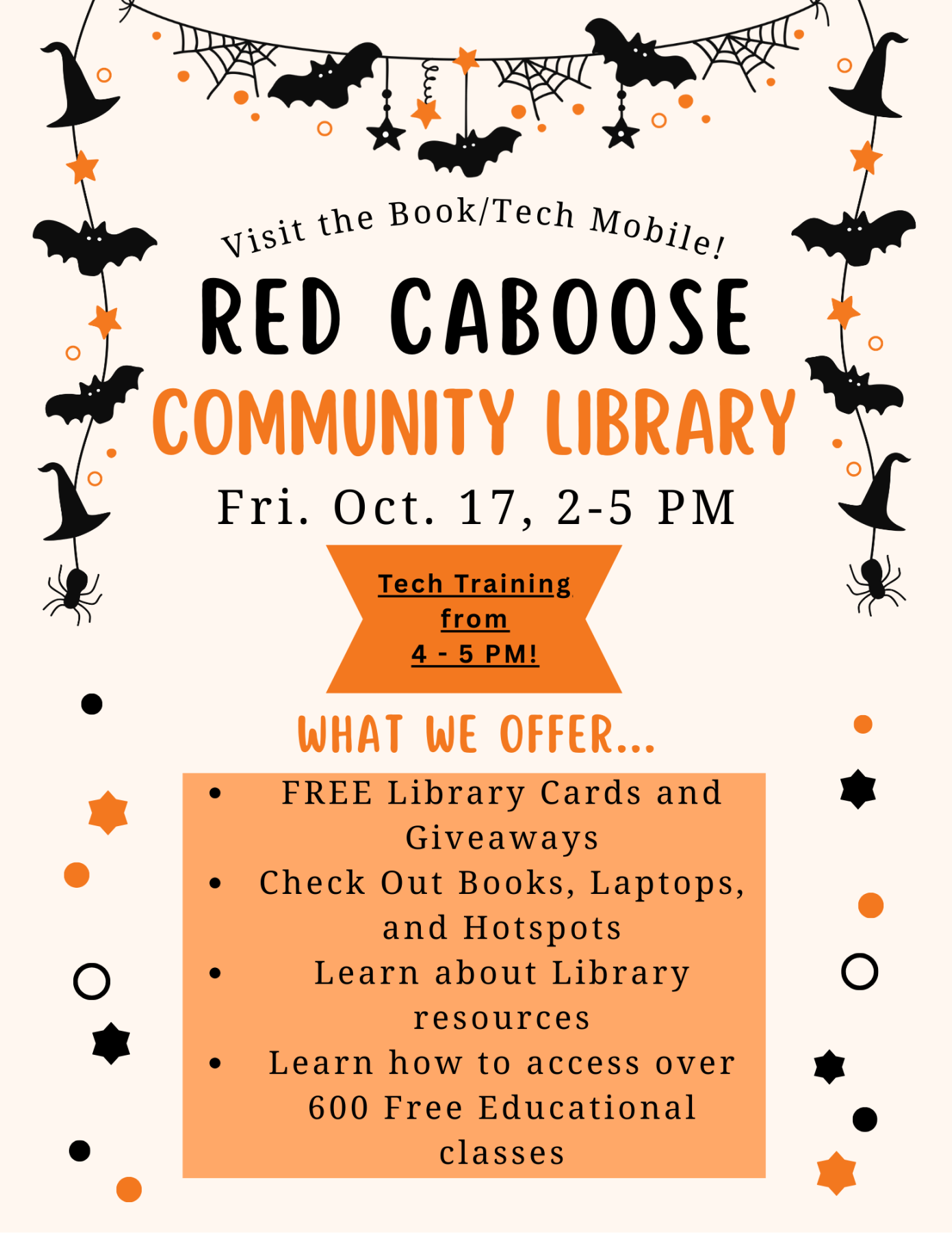 The Red Caboose Community Library and the Town of River Bend are pleased to announce a joint venture with the Craven-Pamlico Regional Library. The Craven-Pamlico Regional Library Book/Tech Mobile will be in River Bend at the Red Caboose Community Library from 2:00 p.m. to 5:00 p.m. on the third Friday of each month. These services are designed to supplement materials that the Red Caboose Library already brings to the community. They will have many technology-based services and equipment available to check out along with books. There will be materials available for adults and children. Please join us in exploring this exciting new community venture!